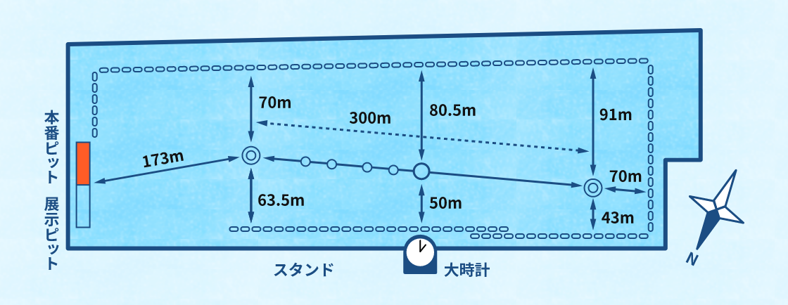 下関競艇場の特徴と攻略法 目次 1. 下関競艇場の概要 歴史と背景 アクセス 2. 水面の特徴 海水の影響 体重の影響 静水面と波の影響 3. 風の特徴 季節ごとの風向き 風速の影響 4. コースレイアウト ピットから2マークまでの距離 スタートラインと1マークの振り幅 5. コース別勝率と決まり手 コース別勝率 コース別決まり手 6. 予想のポイント 風と潮の確認 モーターの性能 選手の体重と経験 スタート 買い方 7. まとめ 1. 下関競艇場の概要 下関競艇場は、山口県下関市に位置する競艇場です。本州にある競艇場の中で最も西に位置しており、通称は「ボートレース下関」です。施設は関門海峡に面しており、潮流や風の影響を受けやすい立地にあります。開場当初から多くの観客を魅了し、現在では通年ナイターレースを開催する競艇場として知られています。 歴史と背景 下関競艇場は1954年に開設され、長い歴史を誇ります。1983年には日本初の薄暮競走を実施し、これが現在のナイターレースの礎となりました。さらに、2017年からは本格的にナイター専用競艇場として運営されています。 アクセス 下関競艇場へのアクセスは、JR長府駅から徒歩約3分と非常に便利です。また、山陽自動車道の下関ICや小月ICから車で約20分の距離にあり、駐車場も1,300台分が無料で利用できます。遠方からの来場者にとってもアクセスしやすい環境が整っています。 2. 水面の特徴 海水の影響 下関競艇場の競走水面は海水で、特に関門海峡からの潮流の影響を強く受けます。満潮時には海水が流入し、水面にうねりが生じやすくなります。このうねりがレース展開に大きく影響を与えるため、潮の満ち引きを考慮した予想が重要です。 体重の影響 海水は淡水よりも浮力が高いため、選手の体重による影響は淡水面ほど顕著ではありません。しかし、軽量の選手が有利となる場面もあるため、出走前には選手の体重を確認することが推奨されます。 静水面と波の影響 下関競艇場は一般的に静水面とされており、波が少ないため走りやすい環境です。しかし、満潮時には波が立つことがあるため、レース前の水面状況を確認することが重要です。特に外海とつながる1マーク側では波が立ちやすいため注意が必要です。 3. 風の特徴 季節ごとの風向き 下関競艇場では季節によって風の影響が大きく変わります。冬は北西の季節風が強く、右横風(スタンド側)が吹きやすくなります。一方、夏は関門海峡からの海風が強く、左横風(バックストレッチ側)が吹くことが多いです。これらの風がレース展開に大きな影響を与えます。 風速の影響 風速が3メートル未満であれば1コースの逃げが有利ですが、風速が4メートル以上になると外側のコースからの攻めが有利になります。特に向かい風が強いときは、3〜6コースの選手が捲りや捲り差しで上位に食い込むケースが増えます。 4. コースレイアウト ピットから2マークまでの距離 下関競艇場のピットから2マークまでの距離は173メートルと、全国の競艇場の中で2番目に長いですこの距離の長さが前付けに影響を与え、特にピット離れの良い選手が有利になります。進入の際にはピット離れの状態を確認し、前付けの可能性を考慮することが重要です。 スタートラインと1マークの振り幅 下関競艇場のスタートラインと1マークの振り幅はわずか7メートルと非常に狭く、インの選手が直進しやすい設計になっています。これにより、イン逃げが決まりやすくなっています。スタート展示ではスロー勢の動きを注視し、スタートのタイミングを見極めることが重要です。 5. コース別勝率と決まり手 コース別勝率 下関競艇場のコース別勝率は以下の通りです: コース勝率2着率3着率舟券出現率1コース60.80%15.40%10.80%87.00%2コース11.90%38.20%29.90%80.00%3コース9.70%32.40%33.00%75.10%4コース9.60%27.00%34.40%71.00%5コース5.90%17.60%35.10%58.60%6コース2.00%8.20%22.00%32.20% 1コースの勝率が非常に高く、特に日没後はさらに高くなります。イン逃げが基本となるため、1コースの選手を中心に予想を組み立てるのがセオリーです。 コース別決まり手 コース逃げ差まくりまくり差し抜き恵まれ1コース95.40%0.00%0.00%0.00%4.30%0.30%2コース0.00%66.30%23.40%0.00%9.20%1.10%3コース0.00%13.40%36.70%37.80%10.50%1.70%4コース0.00%19.90%48.80%23.70%6.70%0.90%5コース0.00%8.10%26.90%52.80%10.30%1.90%6コース0.00%11.20%41.10%34.40%11.20%2.20% 各コースの決まり手も重要なデータです。特に3コースからの「捲り差し」が多く、3コースの選手が勝つ場合は「3-1」の出目が多くなります。また、5コースからの「捲り差し」が高く、これにより5コースの1着率は低くても連対率が高い傾向があります。 6. 予想のポイント 風と潮の確認 レース当日の風向きや風速、潮の満ち引きを確認することが予想の基本です。特に満潮時や強風時は波や風の影響でレース展開が大きく変わるため、これらの情報を基に予想を立てることが重要です。 モーターの性能 モーターの性能も勝敗に大きく影響します。展示タイムや周回展示をチェックし