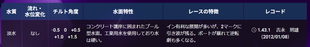 住之江競艇場の特徴と予想攻略法:舟券に活かすコツを徹底解説 目次 住之江競艇場の特徴 1. 水面の特徴と体重差の影響 2. コース設計の特徴 3. ナイターレースの特徴 4. プール水面の特徴 5. 防風壁の役割 予想法&攻略のコツ 1. イン逃げを主体とした展開予測 2. 日没後のレースに勝負する 3. 重量級または軽量級の評価 4. オリジナル展示で適性チェック 5. 地元選手の信頼 住之江競艇場のデータ分析 コース別1着率 コース別決まり手 枠番別コース取得率 三連単の配当分布 住之江競艇場のアクセスと施設情報 アクセス 施設情報 ライブ中継 まとめ あわせて読みたい 競艇のメッカとして知られる「住之江競艇場」。最高グレードである「SG競争」や、それに次ぐグレードである「G1」が数多く開催され、常に全国の競艇ファンが集うナイター場です。本記事では、住之江競艇場の特徴から勝てる予想法まで、勝つために欠かせない知識を共有します。初心者の方でも理解しやすいように解説していくので、ぜひ最後までお付き合いください。 住之江競艇場の特徴 1. 水面の特徴と体重差の影響 住之江競艇場の水質は「淡水」です。塩分濃度が濃い海水と違い浮力が低いため、重量級の選手は沈みやすくなります。そのため、ヘビー級の選手には不利に働くことが多いでしょう。ちなみに、男女別の「平均体重」は、男子54kg・女子47.9kgです。この数値を基準として比較してください。住之江では軽量級の選手が有利となり、平均より重たい選手は評価を下げるのがベターです。 2. コース設計の特徴 住之江競艇場のスタートラインの幅は51m、1マークとホームストレッチの距離は45mです。全国平均とほぼ同水準ですが、特筆すべきは「振り幅が6mしかない」という点です。この距離は全国の競艇場と比較すると小さい方で、振り幅が小さいほどインコースが有利になります。そのため、住之江のコースレイアウトはインコース有利と言えるでしょう。 3. ナイターレースの特徴 住之江競艇場はナイターレースが開催されるため、夕方以降のレースが多くなります。モーターの特性上、気温が低くなると回転数が上がりやすくなるため、性能の差が顕著に現れます。特に助走を取れないインコースにとって、加速しやすいのは大きなメリットです。後半レースではイン勝率が上昇するため、日没後のレースではイン逃げを狙うのがおすすめです。 4. プール水面の特徴 住之江競艇場は他の水面と接していないため、波のないプール水面(静水面)です。海水面で生じるようなうねりや干満差がないため、走りやすくスピード感のある迫力満点なレースを楽しめます。 5. 防風壁の役割 長く横に伸びるスタンド席と大型の電光掲示板が防風壁の役割を果たしており、競争水面に吹いてくる横風を最小限に食い止めています。台風などが近づいている時は強風になることも稀にありますが、基本的に無風または弱風のレースがほとんどです。 予想法&攻略のコツ 1. イン逃げを主体とした展開予測 住之江競艇場では、1コースを主軸とした買い方がベストです。相手は2,3コースを軸に広く流しておけば、ヒモ抜けを回避できます。特に4コースにスタート巧者や格上選手がいる場合は、評価を一段階上げた予想が求められます。また、5コースの連対率もそこそこ高いため、軽視しすぎず舟券を組み立てるようにしましょう。 2. 日没後のレースに勝負する モーター性能が向上する日没後のレースは、1コースの勝率が高くなります。太陽が沈むとインが強くなる傾向があるため、日没後のレースでは1コースを軸にした買い方が勝利への近道です。 3. 重量級または軽量級の評価 住之江の水面は淡水のため、重量級の選手は劣勢な戦いを強いられます。体重が重たい選手は淡水に苦手意識が強いと言われているため、評価を下げるのが無難です。 4. オリジナル展示で適性チェック 住之江の予想には「オリジナル展示データ」が欠かせません。公式サイト内の「直前情報・予想」ページで確認できます。特に「まわり足」のタイムを重要視しましょう。まわり足が速いほど乗り心地が良く、水面との適性が合っていると評価できます。 5. 地元選手の信頼 操縦しやすい海水よりも淡水の住之江競艇場では、地元大阪支部の選手が有利です。地元選手はスタートの感覚や旋回時のタイミングなどを熟知しているため、予想に活かすのがおすすめです。 住之江競艇場のデータ分析 コース別1着率 住之江競艇場の1コース1着率は全国平均の55%を上回る63%です。他のコースの1着率は2コース13.2%、3コース11.6%、4コース8.3%、5コース3.6%、6コース1.4%となっています。基本的には1コースの1着を狙うのが有利です。 コース別決まり手 住之江競艇場の決まり手には「まくり・まくり差し」が強い傾向があります。特に3コースと4コースのまくり率が高いため、これらのコースからの攻めを予測して舟券を組み立てるのが効果的です。 枠番別コース取得率 住之江競艇場の枠番別コース取得率は全