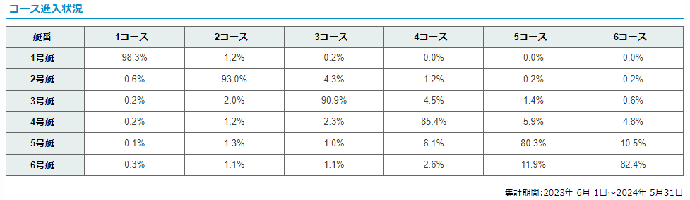 若松競艇場の特徴とコース別勝率・決まり手 九州地区の競艇場の一角を担う「若松競艇場」について、詳細に解説します。若松競艇場には、他の競艇場にはないユニークな特徴が多くあり、それらの情報を知っておくことで、若松攻略に繋がります。本記事では初心者向けの基本知識から、競艇ファン向けの専門的な予想法まで、徹底的に解説しますので、ぜひ最後までお付き合いください。 若松競艇場の基本情報 施設概要 名称:ボートレース若松 住所:福岡県北九州市若松区赤岩町13-1 公式HP:BORTRACE若松 電話番号:093-791-3944 営業時間:14時00分~21時00分 所属支部:福岡支部 主要選手:瓜生正義、田頭実、篠崎元志、篠崎仁志、寺田千恵など多数 アクセス情報 公共交通機関: JR九州筑豊本線「奥洞海駅」から徒歩4分 車の場合: 無料駐車場あり(全886台駐車可能) 特徴的な施設 わかわくらんど:小さいお子様向けのキッズスペース ボルダリングパーク:大人も楽しめるアクティビティ プロジェクションマッピング:視覚的に楽しめるアトラクション 若松競艇場の水面とコースレイアウトの特徴 水面の特徴 水質:若松競艇場の水質は海水です。海水は浮力が高く、体重の影響が少ないため、重量級の選手も活躍しやすいです。 潮の影響:若松競艇場は洞海湾と直接つながっており、潮の満ち引きによる水面の変化がレースに大きく影響します。特に、満潮時と干潮時ではスタートやターンの難易度が変わります。 コースレイアウト スタートラインの幅:50m 1マークとスタンドの距離:41m(全国で7番目に狭い) 振り幅:スタートラインと1マークの幅の差は9m 若松競艇場のコースレイアウトは、1コースと2コースが直進しやすい設計になっており、その分ターンもしやすくなっています。このため、1コースの勝率が高く、2コースの連対率も高めです。 若松競艇場の予想データ コース別1着率と連対率 コース1着率2連率3連率1コース57.7%75.0%83.5%2コース13.6%40.1%59.3%3コース11.8%34.1%54.8%4コース10.0%27.5%48.8%5コース5.3%16.4%33.6%6コース1.6%7.3%20.9% 1コースの勝率は全国平均とほぼ同じですが、2コースの連対率が非常に高いのが特徴です。また、3コースと4コースの3連率も高く、これらのデータを元に予想を立てることが重要です。 コース別決まり手 コース逃げ差しまくりまくり差し抜き恵まれ1コース94.6%0.0%0.0%0.0%5.3%0.1%2コース0.0%68.7%19.3%0.0%10.3%1.6%3コース0.0%10.7%43.4%30.4%14.2%1.2%4コース0.0%22.1%41.9%24.7%9.9%1.5%5コース0.0%6.8%22.6%57.8%10.3%2.4%6コース0.0%10.5%27.0%39.1%19.2%4.3% 2コースからの差しが非常に強く、3コースからのまくりも多いのが特徴です。特に、2コースの差しが決まると1コースの選手が2着に続く傾向が強いため、「2-1」の組み合わせが狙い目です。 枠番別コース取得率 枠番1コース2コース3コース4コース5コース6コース1号艇98.7%1.0%0.1%0.0%0.0%0.0%2号艇0.5%90.8%6.2%1.2%0.6%0.4%3号艇0.3%3.2%87.4%6.2%1.7%0.9%4号艇0.1%1.5%2.8%80.7%8.4%6.2%5号艇0.2%1.7%1.6%8.1%75.0%13.2%6号艇0.2%1.9%2.0%3.8%14.3%77.6% 枠番とコース取得率のデータから、特に4号艇以降は進入コースが変わりやすいことがわかります。本番の進入隊形はスタート展示と同じになることが多いですが、助走距離が短いと進入が乱れることもあるため、注意が必要です。 三連単の配当分布 配当出現率鉄板(0円~1,999円)43.5%中穴(2,000円~9,999円)40.0%大穴(10,000円~)16.6% 若松競艇場では、鉄板・中穴・大穴がバランスよく出るため、レースごとに狙い目を変えることが重要です。特に、1号艇が強いレースでは鉄板狙い、1号艇が弱いレースでは中穴・大穴狙いが有効です。 若松競艇場の予想法と攻略のコツ 基本的な予想法 イン逃げを主体とした予想:1コースの勝率が高いため、基本的には1号艇を軸に舟券を購入します。 2コースの差しに注目:2コースの差しが決まりやすいため、2号艇を絡めた舟券も狙い目です。 3コースのまくりをチェック:3コースのまくりが多いため、3号艇が強い場合は注意が必要です。 コース別の予想のポイント 1コース:スタートが安定している選手を重視し、1着狙いの舟券を中心にします。 2コース:差しが得意な選手を選び、「2-1」の組み合わせを狙います。 3コース:まくりが強い選手の場合は、「3-4」の組み合わせを検討します。 4コース以降:特に4コースのまくりが決まる場合は、「4-1」や「4-5」などを考慮します。 潮と風の影響を考慮した予想 満潮時:1・2コースが有利になるため、内側のコースを重視します。 干潮時:3・4コースが有利になるため、外側のコースを狙います。 風の影響:追い風の場合は内側のコース、向かい風の場合は外側のコースが有利です。 企画レースの活用 進入固定戦隊5レースジャー:1・2・4号艇に強い選手が配置されるため、鉄板狙いに最適です。 エイトビート:1・2・3号艇にA級選手が配置されるため、こちらも本命寄りのレースです。 まとめ 若松競艇場は、他の競艇場と比べても独特な特徴を持っています。水面が海水であること、潮の影響が大きいこと、そして進入隊形が乱れやすいことが挙げられます。こ