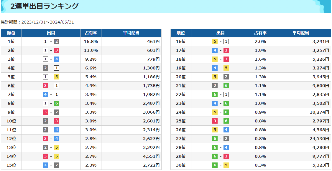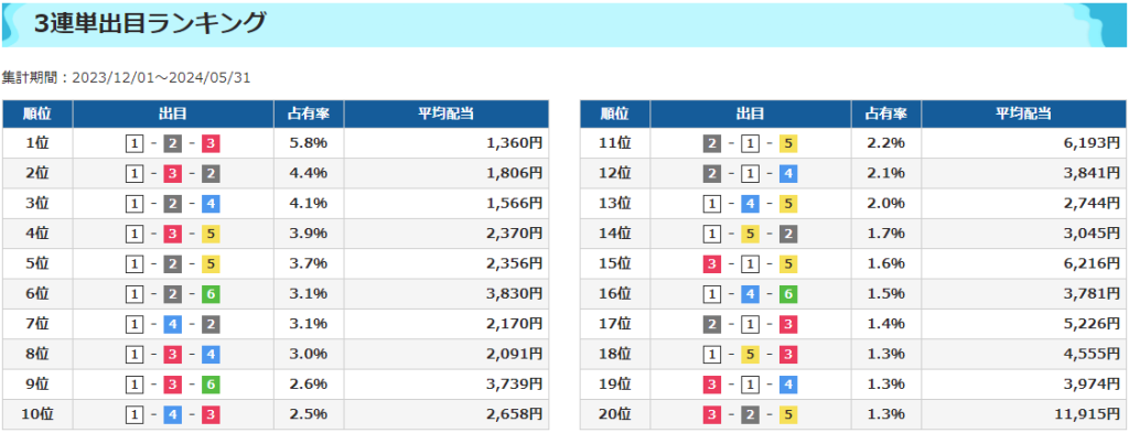 鳴門競艇の特徴&コース別勝率・決まり手などの予想データ 目次 鳴門競艇場の基本情報 鳴門競艇場の特徴 鳴門競艇場のコース別勝率と決まり手 鳴門競艇の予想法&攻略のコツ 鳴門競艇場の企画レース 鳴門競艇場のその他の特徴 まとめ あわせて読みたい 鳴門競艇場の基本情報 鳴門競艇場は徳島県鳴門市に位置し、四国地区にある2つの競艇場の一つです。景観が美しい場所にあり、特にそのコースレイアウトが特徴的です。 名称: ボートレース鳴門 住所: 徳島県鳴門市撫養町大桑島濘岩浜48-1 電話番号: 088-685-8111 公式HP: ボートレース鳴門 鳴門競艇場の特徴 水質と潮の影響: 鳴門競艇場の水面は海水で、潮の満ち引きにより水面が変動します。これにより浮力が大きくなるため、体重の重い選手が有利になることがあります。 満潮時は水面が荒れやすく、干潮時は安定します。これにより、レースごとに戦略が異なります。 風の影響: 鳴門競艇場では季節によって風向きが変わります。夏場は南東の向かい風が多く、冬場は北西の追い風が主です。風速が3m以下ならセオリー通りの予想で問題ありませんが、風速が強い場合は波乱が予想されます。 ピットと2マークの距離: 鳴門競艇場ではピットから2マークまでの距離が短く、これにより前づけがしにくい特徴があります。したがって、枠なり進入になりやすいです。 鳴門競艇場のコース別勝率と決まり手 1コース: 鳴門競艇場の1コース1着率は48.4%で、全国平均の55.5%より低くなっています。イン逃げが決まりにくい傾向があります。 2コース: 2コースの1着率は17.3%と高めで、差しが決まりやすいコースです。インが膨らみやすいレイアウトが影響しています。 3コース: 3コースの決まり手はまくりが多く、1着率は14.0%です。特に強い選手がまくりを狙うことが多いです。 4コース以降: 4コースから6コースの1着率はそれぞれ10.9%、7.5%、2.2%と低めです。ただし、まくり差しが決まりやすいコースとなっています。 鳴門競艇の予想法&攻略のコツ イン逃げに過度な信用は禁物: 鳴門競艇場ではイン逃げが決まりにくいため、過度にインに期待するのは避けたほうが良いでしょう。普段より点数を多めにして広く買うことが推奨されます。 2コースの強さを活かす: 2コースの1着率が高いため、2コースからの差しやまくりを積極的に狙うことがポイントです。 風と潮のチェック: レース前には必ず風向きと潮の状況をチェックしましょう。これにより、どのコースが有利かを判断できます。 企画レースの狙い目: 「とるならなると」などの企画レースでは1号艇にA級選手が配置されるため、イン逃げの成功率が高いです。このようなレースは積極的に狙うと良いでしょう。 鳴門競艇場の企画レース とるならなると(1R): 1号艇にA級選手を配置し、他の枠番にB級選手を配置するレース。イン逃げ成功率が高く、初心者にもおすすめです。 どーなるなると(2R): 日替わり企画で、中穴決着が多いレースです。予想が難しく、波乱を狙うファン向けです。 どきどきなると・とにかくなると(3R・4R): 1号艇にA級選手が配置されますが、他の枠番にも強い選手がいるため、予想が難しいレースです。 鳴門競艇場のその他の特徴 施設の概要: 鳴門競艇場のスタンドは斜め設計になっており、1マーク側が狭くなっています。このため、インコースが走りにくいと言われています。 イベントとグルメ: 鳴門競艇場では様々なイベントが開催されており、グルメも充実しています。特に「なるちゃん焼き」は人気のお菓子です。 ライブ中継とリプレイ: ボートキャストでレースのライブ中継やリプレイが楽しめます。スマホやパソコンから簡単にアクセス可能です。 まとめ 鳴門競艇場はイン逃げが難しいコースレイアウトと、潮と風の影響を強く受ける水面が特徴です。これらの特徴を理解し、2コースの強さや企画レースを上手く活用することで、勝率を上げることができます。競艇ファンならば、一度は訪れてみたい競艇場です。 あわせて読みたい 無料でよく当たる!優良予想サイト紹介「ブルーラグーン」「ドレミボート」 Post Views: 1,953 最近観覧した記事 おすすめコンテンツ 【検証あり】無料でよく当たる!優良予想サイト紹介「ブルーラグーン」「ドレミボート」【口コミ・評判など】 7月 4, 2024 ギャンブル全般, ニュース 2024年に引退および登録削除された競艇選手の一覧とその理由 6月 13, 2024 競艇(ボートレース), ボートレーサー・平高奈菜のプロフィールと輝かしいキャリア 11月 7, 2024 ボートレーサー, 競艇(ボートレース) 島田なぎさ、約2年の産休明け復帰と嬉しい産休明け初勝利 11月 28, 2024 ニュース, 競艇(ボートレース) 【2025常滑BBCトーナメント注目選手】地元で躍動する吉田裕平選手 1月 23, 2025 ボートレーサー, 競艇(ボートレース) 競艇初心者が避けるべき予想方法とおすすめしない賭け方 6月 18, 2024 競艇(ボートレース), 競艇の基礎知識 人気の記事 2024年に引退および登録削除された競艇選手の一覧とその理